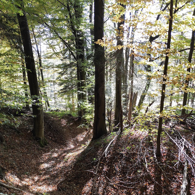 schodzę w dół z myślą przewodnią Ewy - Mewa w locie - #ZachwytNadŚwiatem, zachwycając się a to kontrastami, a to grą światła, a to kształtem drzew, a to po prostu ciszą. z lektur książek Kazimierza Nóżki i Marcina Sceliny, wiem, że na tym obszarze grasują niedźwiedzie. coraz bardziej zaczyna mnie prześladować myśl, że idę sama i co byłoby gdyby mi się taki towarzysz wędrówki pojawił na drodze... ale nic. odganiam te myśli, że może jednak mylę obszar, że to może nie tu, ale co jakiś czas zwracając uwagę na tropy w błocie. nic świeżego i nic, co by przypominało niedźwiedzie łapy.